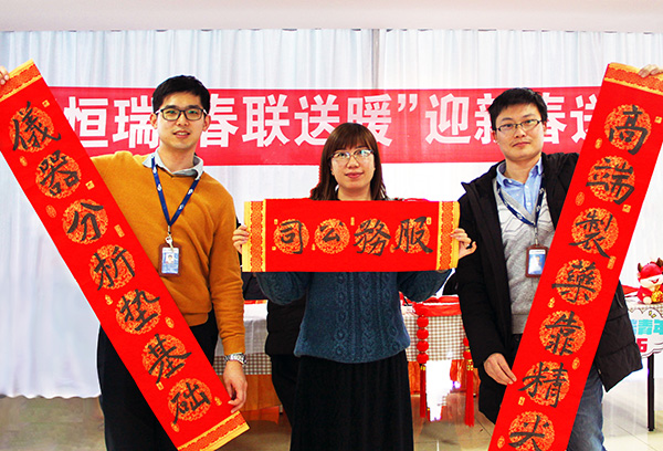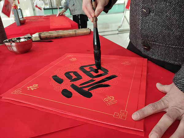 为营造欢乐祥和的新春氛围,弘扬中华优秀传统文化,2月8日中午,公司团委举办了第二届“团聚Z6·尊龙凯时 春联送暖”迎新春送祝福活动,邀请的2位连云港市书法家协会理事与4位公司书法爱好者们现场累计送出春联600余副,“福”字200余个,将新春的喜庆与美好的祝愿分享给Z6·尊龙凯时及广大员工。