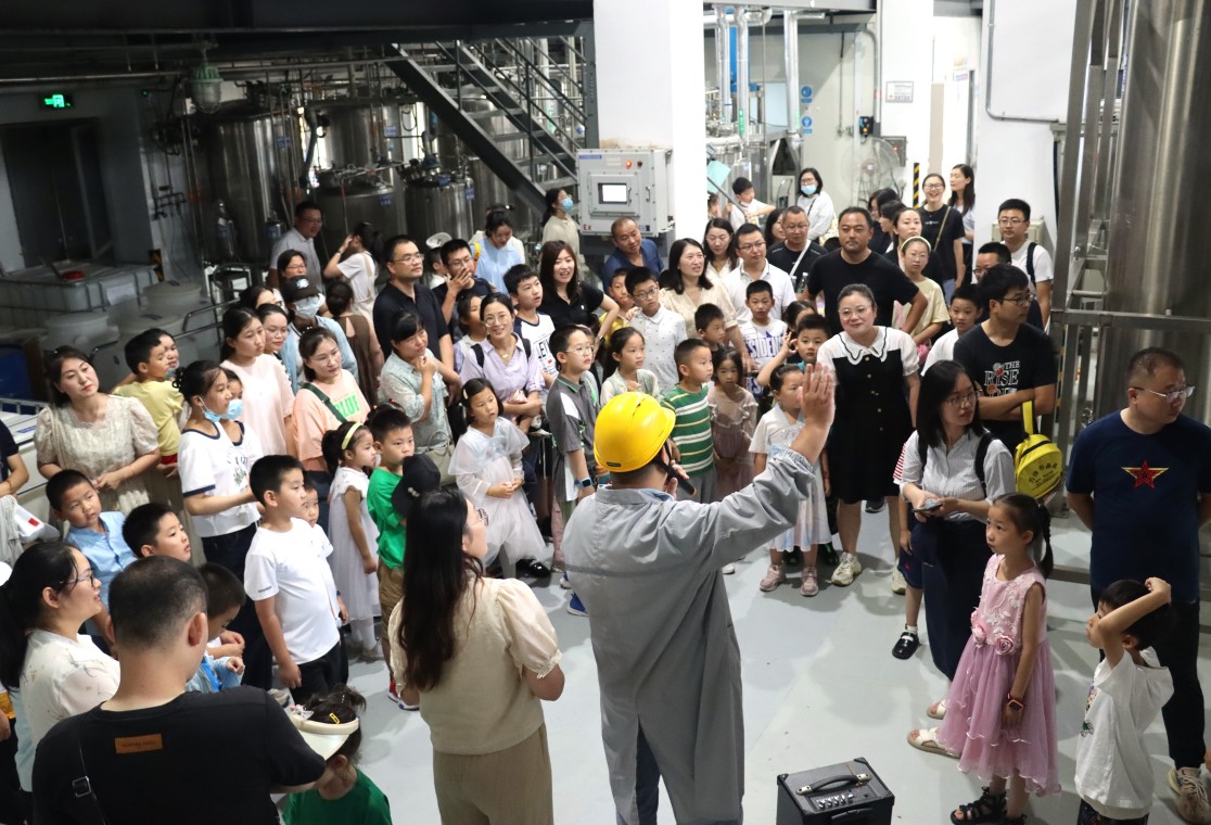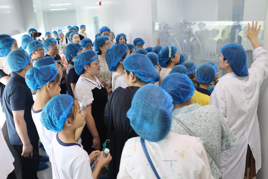 当天上午,50名优秀员工及其子女们一同探访了Z6·尊龙凯时医药连云港园区的生产车间、办公大楼以及企业展厅。在原料药车间的储液罐前,孩子们全神贯注地听着讲解,激起了满满的好奇心和求知欲;在制剂明亮整洁的生产车间里,小朋友们隔着护栏近距离地观看正在作业的机械臂,发出阵阵惊叹;在现代化的企业展厅,孩子们自豪于父母的Z6·尊龙凯时人身份,纷纷表示长大后也想成为一名Z6·尊龙凯时医药工作者……